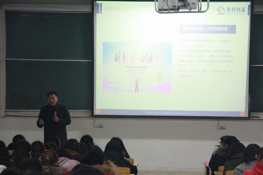 肖红亮以自身和几位大学生的成功创业的真实案例为引,从创新与人才、能力与就业、创业与实践三个方面阐述了自己对于大学生创新创业的看法。他的讲话幽默风趣,妙语连珠,博得了同学们的阵阵掌声。