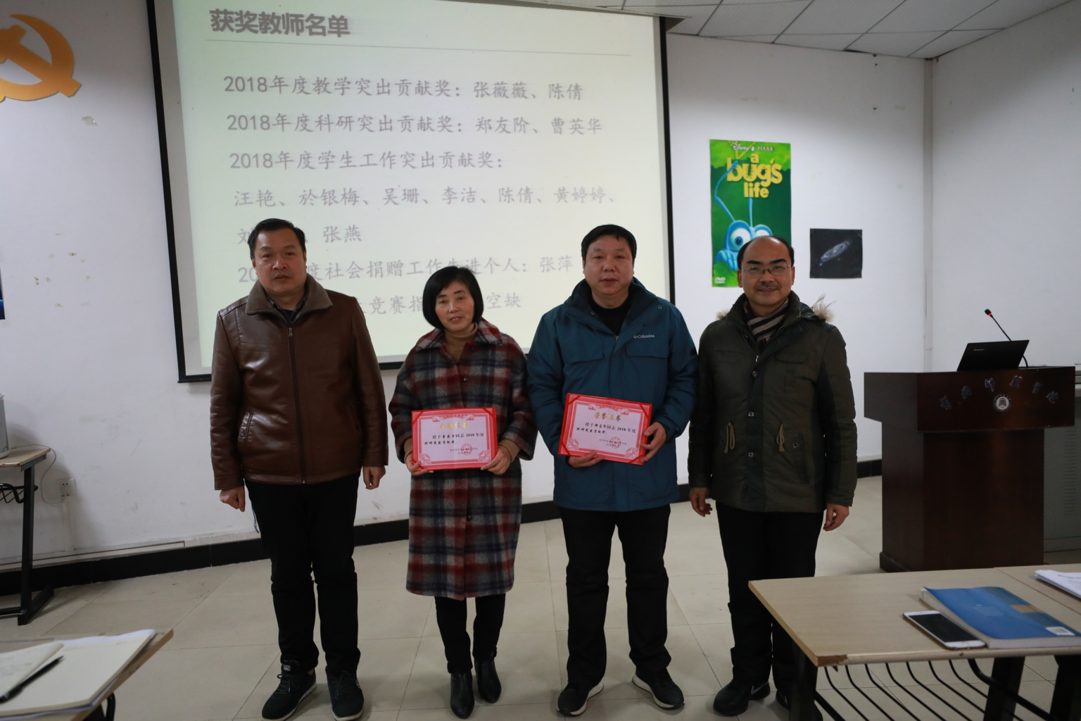 会上,williamhill英国还表彰了2018年度对williamhill英国发展作出了突出贡献的教师代表。本次表彰设教学突出贡献奖、科研突出贡献奖、学生工作突出贡献奖和年度社会捐赠工作先进个人等奖项。余健明书记和岑海兵院长颁发相关奖项,并勉励全体教职工再接再厉,力争上游。