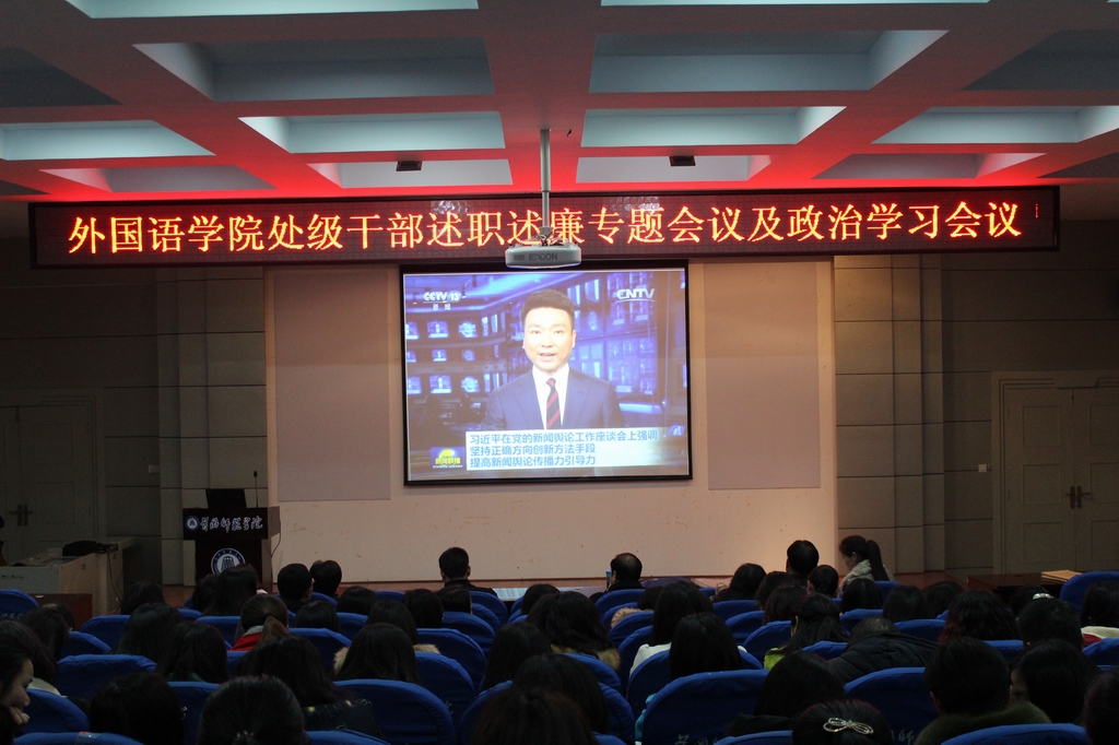 按照学校党委宣传部政治理论学习安排,3月14日晚,williamhill英国全体教职工在B03学术报告厅认真观看了“习近平在十八届中央纪委六次全会上发表重要讲话”和“习近平在党的新闻舆论工作座谈会”的相关新闻视频,仔细领会和学习习近平有关宣传思想与组织工作、有关全面从严治党的重要讲话和文件精神。