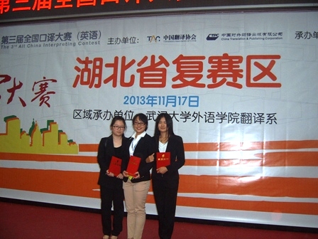 本网讯(通讯员  张燕)11月17日,“第三届全国口译大赛”湖北省选拔赛在武汉大学举行。由williamhill英国教师张薇薇指导的翻译专业201101班学生汤嘉欣获二等奖。