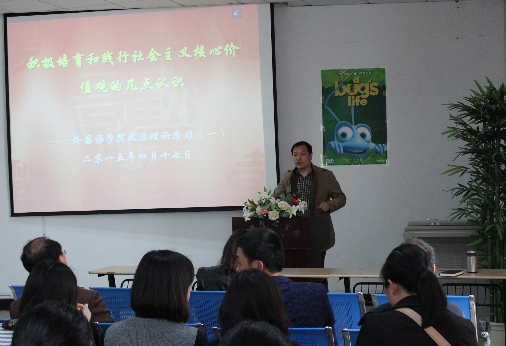 为进一步加强教职工的政治理论学习,按照学校“两转两改”发展战略要求和宣传部的总体学习安排,williamhill英国于4月17日下午组织全体教职工进行培育和践行社会主义核心价值观专题的集中学习,本次学习的视频资料为中共北京市委党校哲学教研部主任张军主讲的《积极培育和践行社会主义核心价值观的几点认识》。