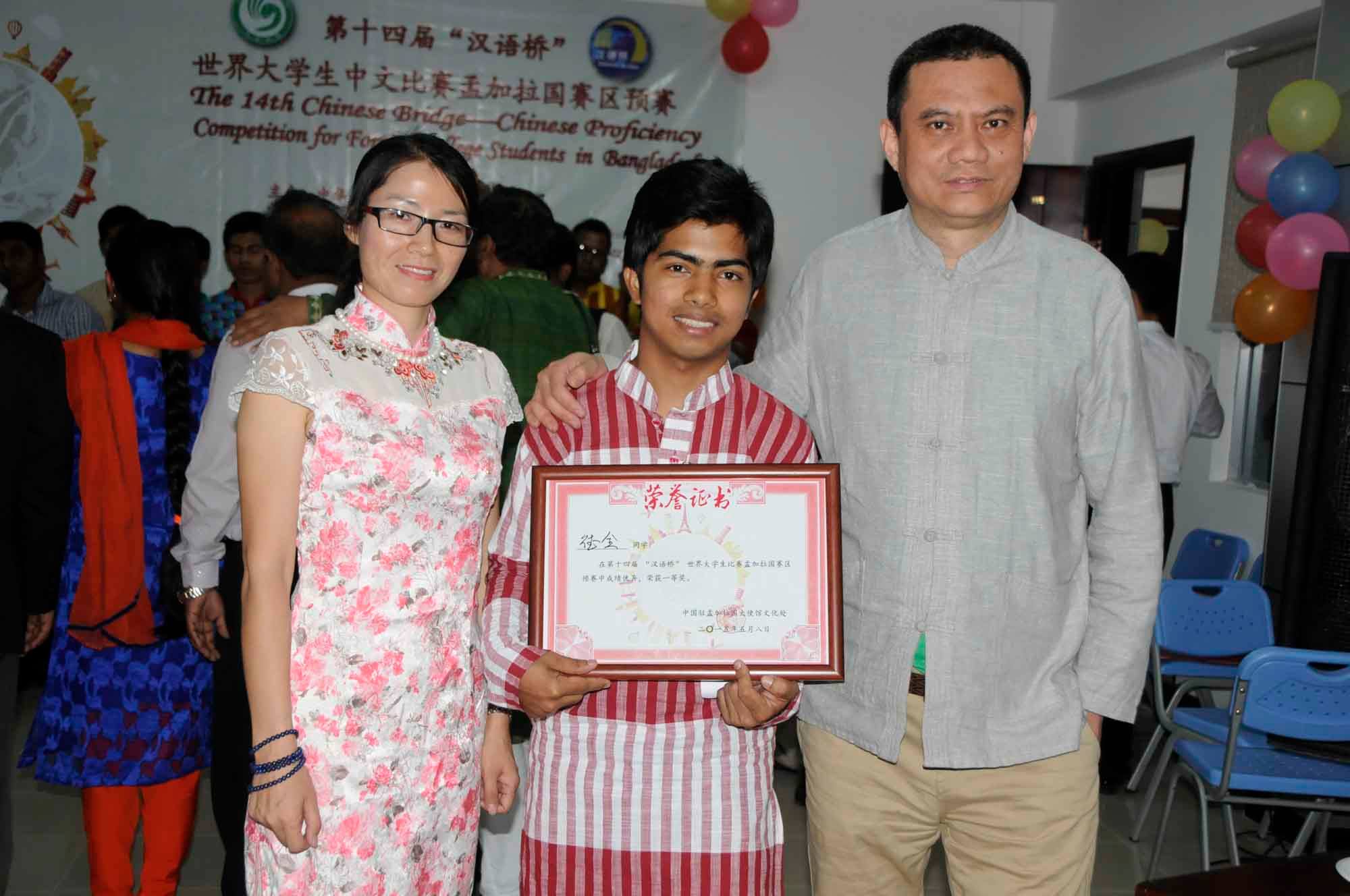 5月8日,主题为“我的中国梦”的第十四届“汉语桥”世界大学生中文比赛孟加拉国赛区预赛在孟加拉达卡大学现代语言学院的中国研究中心成功举办。有来自4所大学的32名选手参加。比赛分中文演讲、中国知识问答和才艺表演三个环节。精彩的中文演讲和紧张的问答环节博得观众的阵阵喝彩。在才艺表演环节,小品、太极剑、葫芦丝、水墨画、中国功夫等中华才艺被演绎得淋漓尽致。