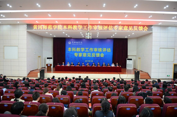 本网讯(通讯员 覃明明)11月9日下午,教育部本科教学工作审核评估专家意见反馈会在我校厚德楼学术交流中心举行。专家组组长、东北大学原副校长姜茂发教授,专家组副组长、中南财经政法大学副校长姚莉教授,专家组成员、湖南师范大学原校长刘湘溶教授、福州大学原副校长高诚辉教授、鲁东大学副校长刘焕阳教授、武汉科技大学副校长吴怀宇教授、湖北工业大学副校长龚发云教授、武汉纺织大学副校长罗锦银教授、湖北汽车工业学院副校长张友兵教授、山东大学教务处处长王仁卿教授、武汉大学教科院副院长刘亚敏教授,湖北省教育评估院党委书记、院长方向荣,湖北省教育厅高教处处长邓立红,省教育评估院副院长张祖江、研究员李友玉,项目管理员、省教育评估院高传平,专家秘书、省教育评估院徐燕、夏睛,以及我校校领导陈兴荣、李金奇、彭锦、汪晓凌、王锋等出席反馈会。邓立红主持反馈会。