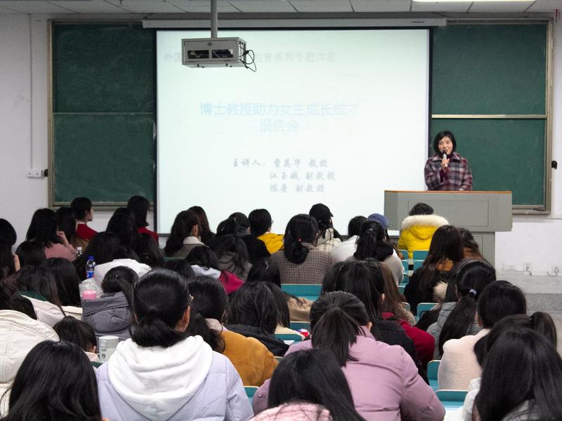 第二站——“博士教授助力女学生成长成才”讲座。3月7日晚7:00,讲座于逸夫楼C02举办,我们十分荣幸地邀请到了陈曼副院长副教授、曹英华教授、江玉娥副教授作为本次讲座主讲人,为我们williamhill英国女生分享她们人生中有趣的学习成长经历,教会我们如何进行学业及人生规划。