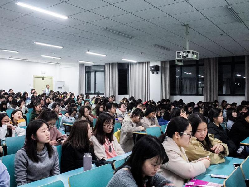 第三站——“女大学生生理健康”讲座。3月13日晚,学院邀请了黄冈市黄州区人民医院妇产科主任医师张小梅为主讲人。此次讲座主要围绕女性青春期特点、女性性卫生以及性传播疾病与预防等三个方面展开介绍,根据我院女生目前的身心理特点,向在场女生普及了青春期女生生理卫生知识。