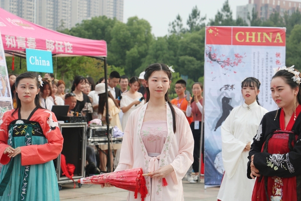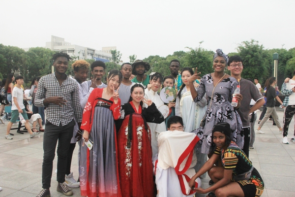 多国文艺表演中,有樱花社带来的清丽纯美的和服舞表演;有俄罗斯的帅哥靓女组合表演的吉他弹唱;有汉服展示和古风献唱,仙袂飘飘的汉服和清脆缠绵的女声展现了泱泱大国的文化底蕴;有外教Andy和外院学子同台表演的师生吉他弹唱《童年》;有我校体育学院同学带来的刚劲雄浑的中华武术表演;有俄罗斯交换生和我校学子共同表演的维也纳华尔兹舞蹈;有埃塞俄比亚留学生带来的非洲传统唱跳即兴表演,简短、精彩的文艺表演让人叫绝,回味良久。