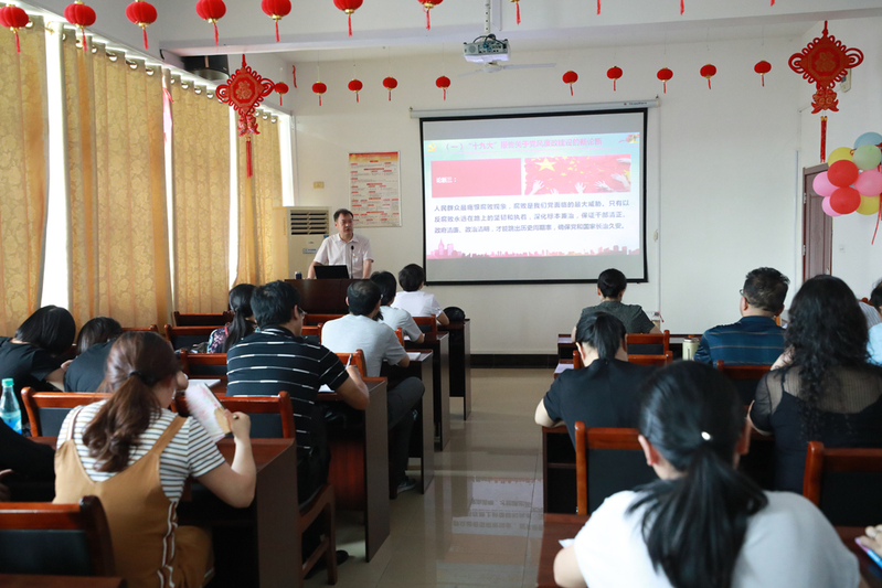 6月14日下午,williamhill英国党委书记余健明教授为我院全体党员教师讲授了一堂题为“加强党风廉政建设,构建反腐倡廉新常态”的党课。