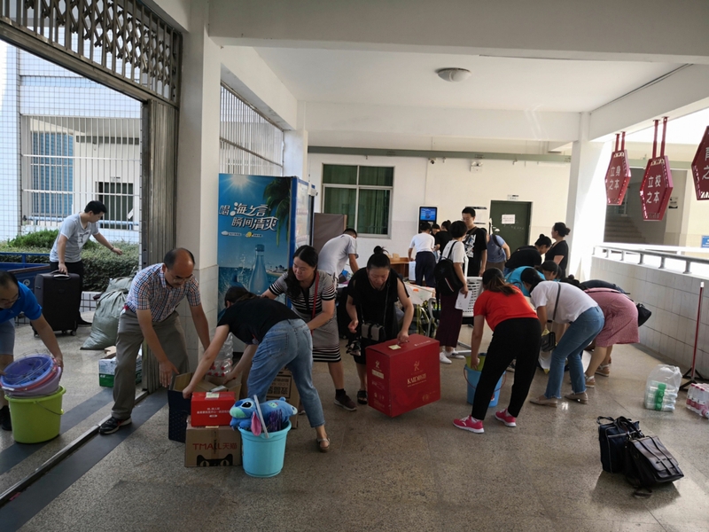 考虑到我院女生多、行李多且重的情况,学院党委成立党员突击队,号召全院党员教师积极参与搬迁工作。党员同志们积极响应,这些党员同志里有年纪较长的廖旻老师、有身体尚在术后恢复期的朱颂老师,也有刚休完产假的严菊环老师。部分非党员老师得知消息后也赶来加入突击队。