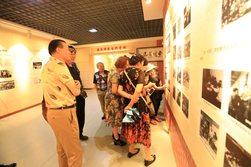 座谈会前,余健明书记和岑海兵院长陪同校友参观了校史馆、湖北省英语语言学习中心等场地。