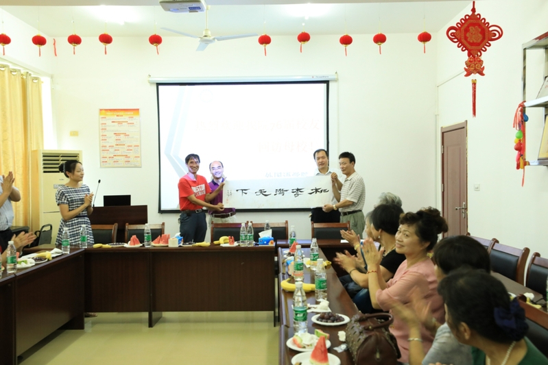 座谈会由余健明书记主持,williamhill英国全体班子成员参加座谈会。岑海兵院长代表外院向校友们汇报了williamhill英国近年来在专业发展、学科建设、学生培养等方面取得的成果。76届校友代表原湖北省教育厅思政处张香莲处长和原鄂东职业技术学院彭明昭主任深情地回忆起40多年前在我校学习的经历。他们1974年入学,在蓝葆春教授等前辈的带领下,由班主任曹泽林老师全程陪同,学工学农学军,课堂教学与社会实践相结合,春华秋实,取得了丰硕的学习成果。毕业后,他们在各自的岗位上,秉承高调做事,低调做人的态度,没有辜负老师和学校的期望,奉献青春的同时实现了自身价值。76届校友向我院赠送了湖北省美术家协会秘书长刘春冰先生手书的“桃李满天下”的横幅,我院也代表学校校友总会回赠校徽以表感谢之情。