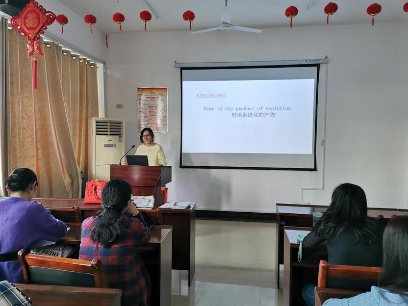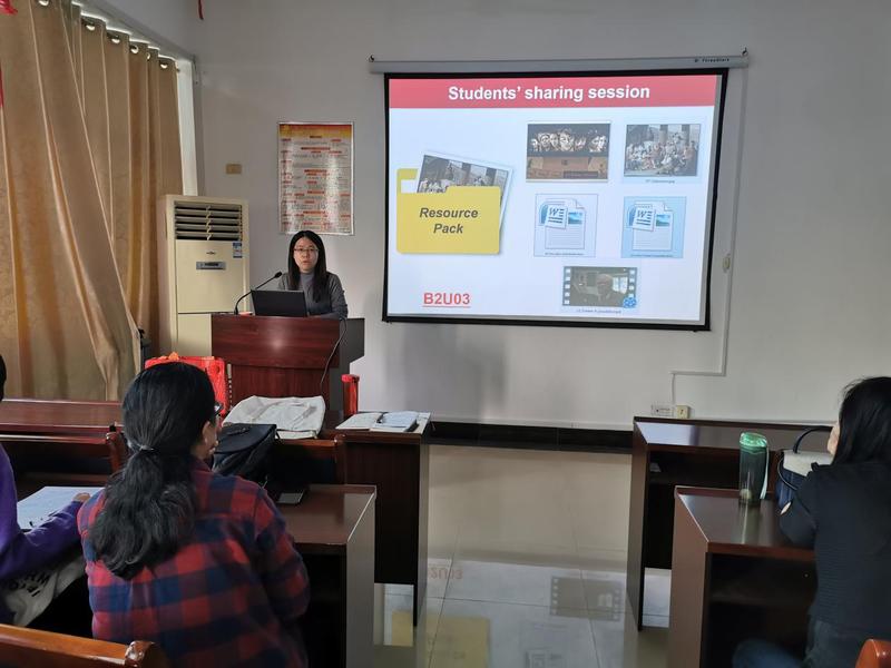 第二阶段是教学经验交流。 胡淑娟老师介绍了阅读圈在大学英语读写课上的具体实施方法以及在实施过程中遇到的问题,并向大家展示了学生分组阅读中的优秀成果。洪丽燕老师则分享了微助教在大学英语大班教学中的应用,包括如何在课堂上通过微助教检查学生阅读圈课前资源包内容的完成情况、如何利用微助教提高学生课堂参与度和积极性等。