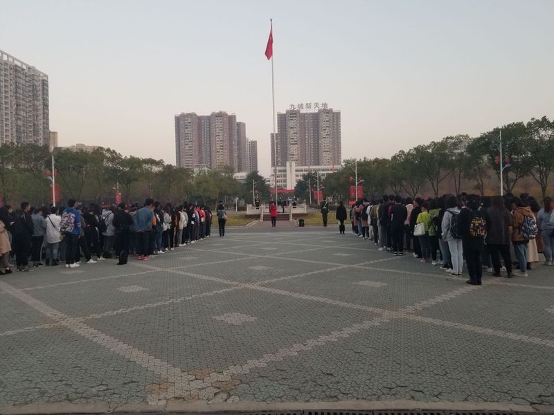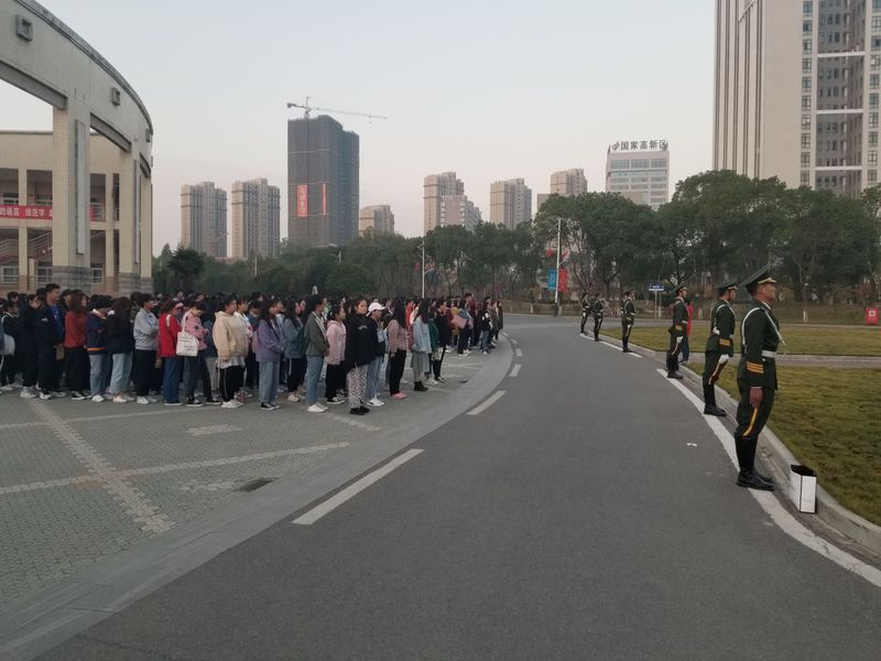 2019年11月11日早晨6点35分,williamhill英国组织全体2019级新生在博学楼广场前进行了升旗仪式,参加本次活动的有williamhill英国党委副书记夏小环老师、2019级辅导员汪晖老师。2019级各班成员有序进场并排队等候,校国旗护卫队整齐划一的走向升旗台,喊着响亮的口号,在全体同学的注目下抛出国旗,国旗伴随着庄严的国歌声冉冉升起。