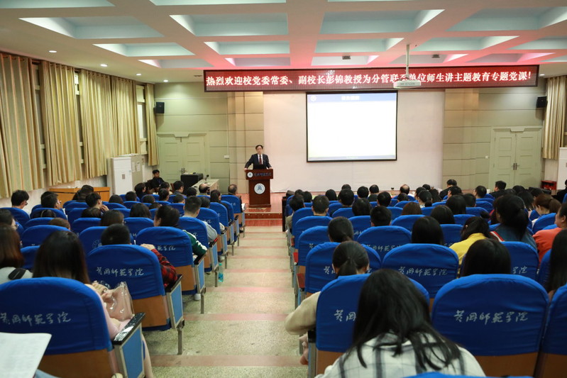 根据学校“不忘初心、牢记使命”主题教育工作部署安排,11月7日晚7:00,校党委常委、副校长彭锦为分管联系单位师生讲授了一场题为“不忘教育初心、牢记育人使命”的专题党课。