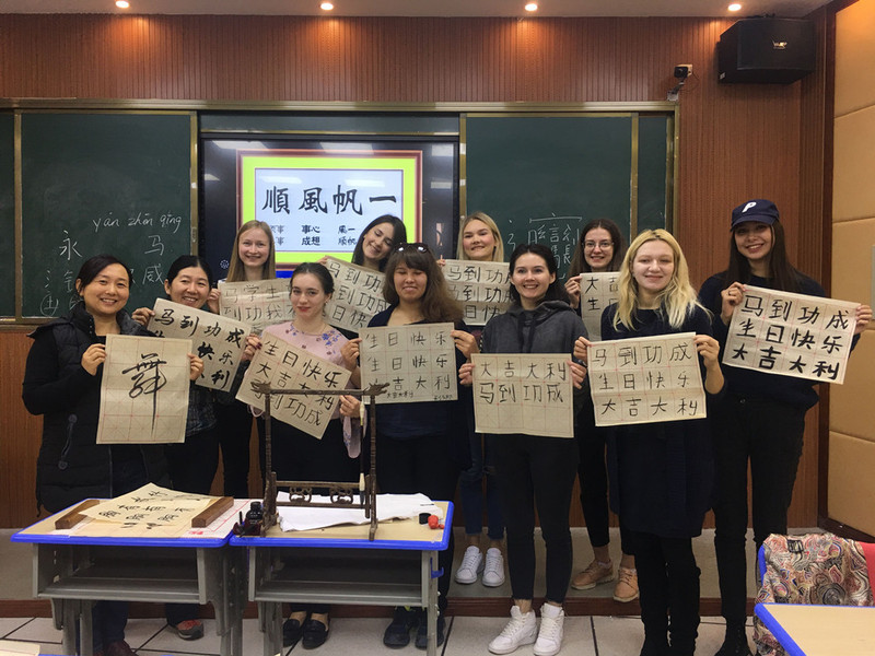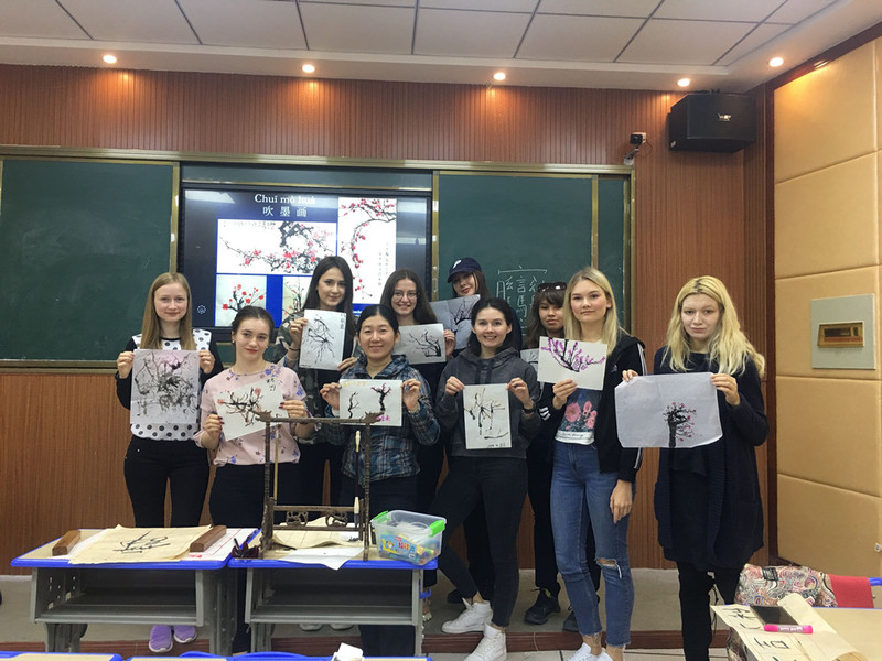 11月22日,我院教师李峥在圆楼305B为我院俄罗斯交换生举办了一场中国传统书法与绘画工作坊,来自俄罗斯的9名交换生和4名对外汉语专业的实习生参加了本次体验学习。