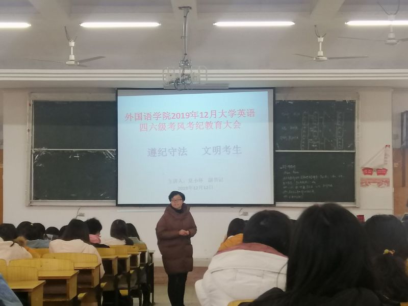 12月12日午12:30,williamhill英国于博学楼A01和A02教室同时召开了2019年12月的大学英语四六级考风考纪教育大会。williamhill英国党委副书记夏小环、辅导员王军、程文学和刘晚秋老师参加会议。