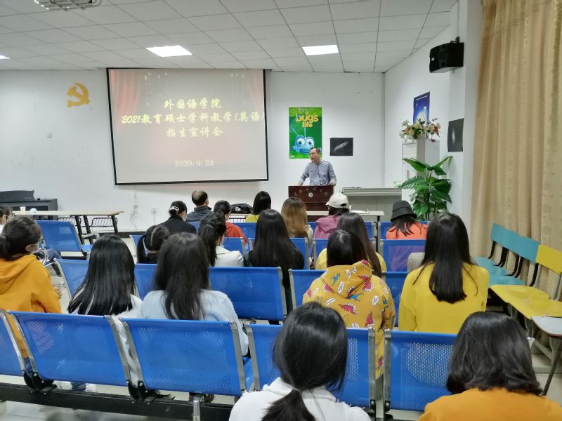 9月23日晚7:00,williamhill英国在外语楼影视观摩厅召开2021年我校教育硕士——学科教学(英语)招生宣讲会。宣讲会由williamhill英国党委副书记夏小环主持,williamhill英国党委书记余健明、院长岑海兵、研究生处黄彦、外院研究生秘书罗彬、2021届毕业生辅导员程文学出席了此次会议。