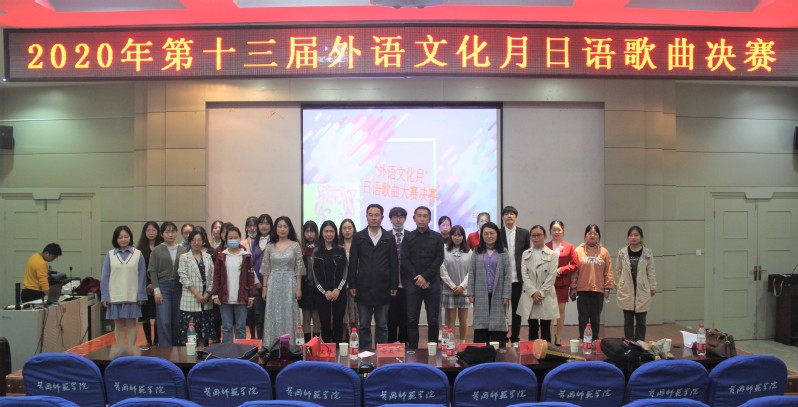 本届“外语文化月”之“唱响青春,异彩纷呈”日语歌曲决赛在一阵阵热烈的掌声中宣告圆满落幕,全体领导老师、参赛选手和现场工作人员进行了合影留念!