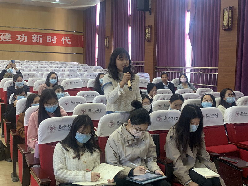 13日上午,我院师生首先观摩了骆驼坳中学的八年级听说课。该课程由闫满玉老师主讲,课程内容由浅入深,环环相扣,充分调动了学生参与课堂活动的积极性和主动性。授课结束后,我院师生听取了闫老师的课程设计和教学反思汇报,并进行了热烈的互动交流。研究生同学积极发言提问,向授课教师学习教学经验,大家一致认为,闫老师的课程设计在体现英语学科的知识性和人文性的同时,还涵盖了职业理想教育和德育教育思想,展现了中学英语教师处理教材的能力和英语学科素养。岑海兵教授在发言中指出,我校秉持知行合一的教学理念,为鄂东地区培养基础教育力量,研究生同学们既要学好教育教学理论知识,还要注重实践,努力成长为学习型、研究型的新时代人民教师。