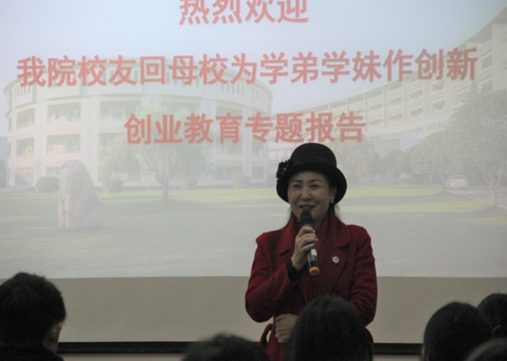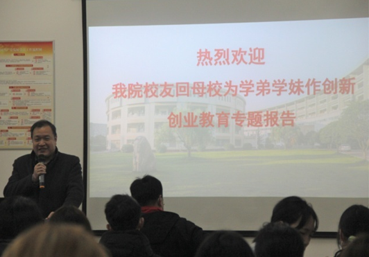 报告会开始,余书记致辞,他向大家讲述了我校建校115周年的光辉历史,并热情隆重地介绍了殷亚芬校友,希望同学们通过校友的分享交流,获得更多创新创业的理念和知识,在未来的学习生活中积极创新创业,不断成长进步。