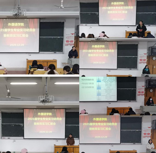 12月28日上午,williamhill英国在博学楼A01召开2021届学生专业实习动员会暨教育实习汇报会。副院长陈曼、副书记夏小环、四个专业的系主任、教学秘书、年级辅导员及相关班级班主任参加本次活动。