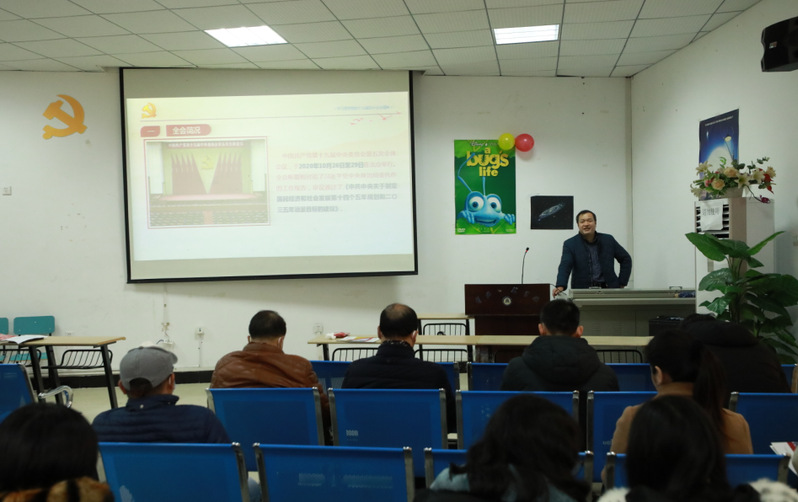 12月24日下午,院党委书记余健明教授在圆楼影视观摩厅就党的十九届五中全会精神为全体教工党员做宣讲报告。