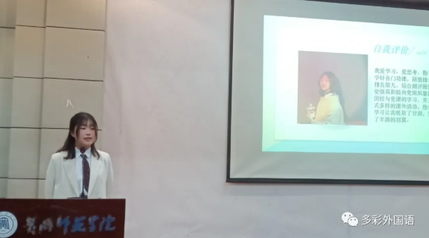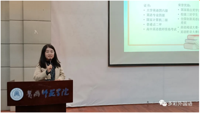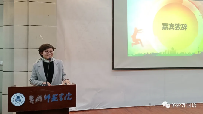 嘉宾万呈惠老师就全国大学生英语竞赛参赛作了现场的宣传,她鼓励广大同学要有走出校园的视野,多参加省级、国家级赛事,与来自全国的大学生同台竞技,以赛促能,提升自我。