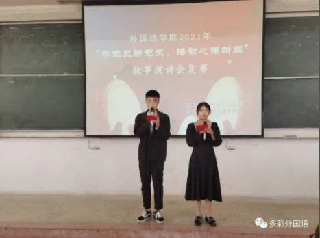 本次“学党史讲党史,悟初心谱新篇”故事演讲会复赛由外院党委副书记夏小环老师、外院团委指导老师胡晓晏老师、团委副书记张怡、英文辩论队队长杜靓文、中文辩论队队长罗辰凤担任评委。由龙子秋、陈思宇两位同学主持本次故事演讲会。