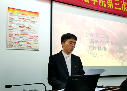 第三项,由2021届学生会副主席罗章诚作团学工作报告。罗章诚对近一年的团学工作进行了回顾,并对下阶段的工作做了展望和部署安排。