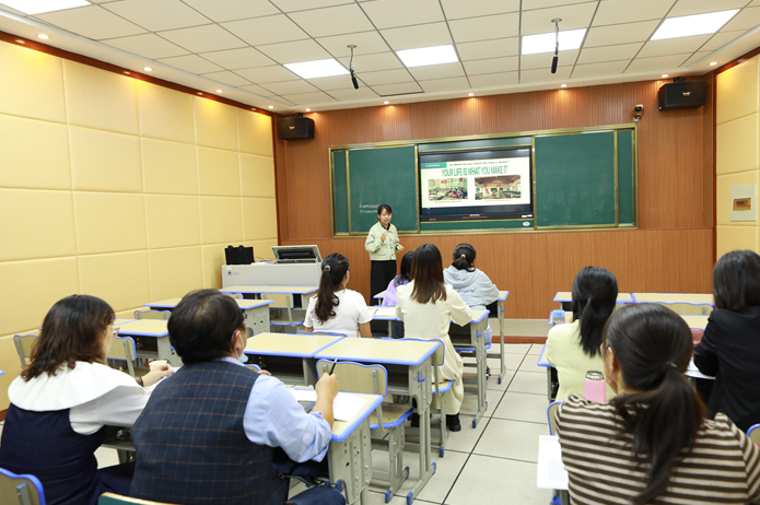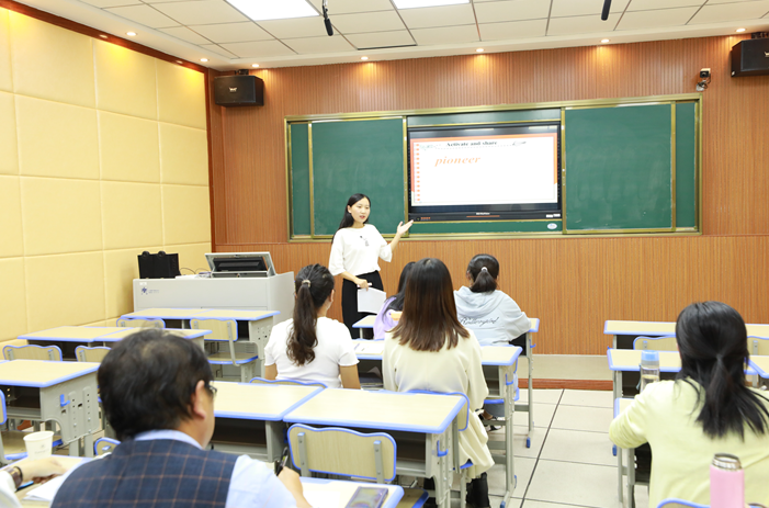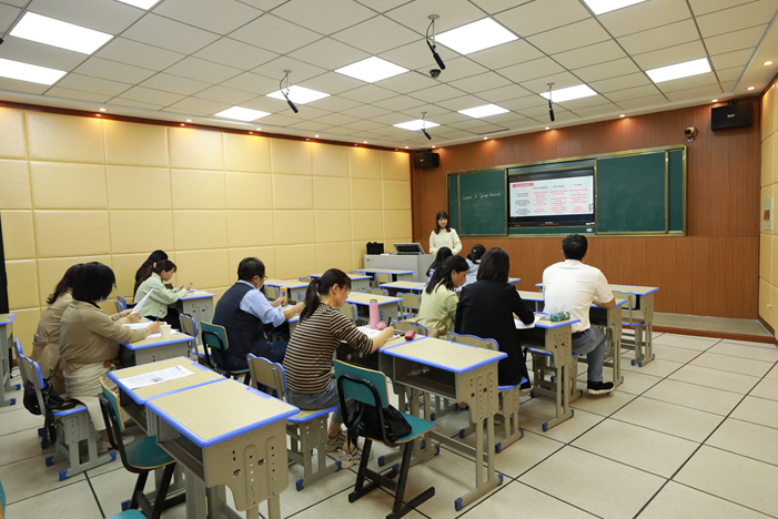 活动伊始,伦倚琼、曹梦悦和文雅婷三位研究生同学分别讲授了高二年级的英语课程。黄冈中学的方方老师、黄州区一中张佳新、陈晓、张琼和吴秀四位老师以及我院汪艳、於银梅二位老师围绕三位同学的授课进行了深入细致的点评。