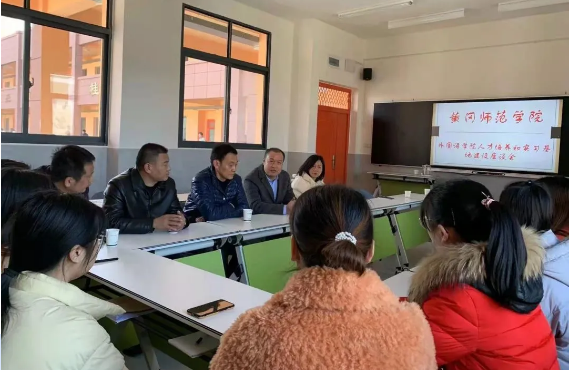 11月23日,williamhill英国党委书记余健明教授一行赴罗田看望实习生,并开展人才培养和实习基地建设调研。罗田县思源学校黄登峰校长、王立军主任、英语教研组组长倪飞、英语组全体实习指导教师、我院实习生参加了本次座谈会。座谈会由余健明书记主持。