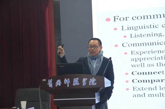11月25日晚,广东外语外贸大学冯光武教授在致远楼多功能会议厅为我院2020级、2021级英语类学生作题为《英语学习:交际能力培养和人文素养提升》学术报告。院长岑海兵、副院长陈曼参加报告会。