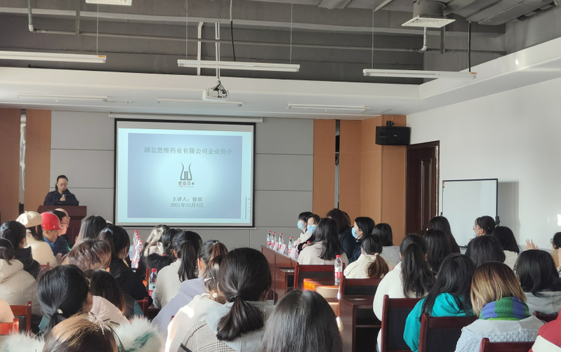 葛石平向同学们介绍了公司的迅猛发展势头和公司在行业中的领先地位。他表示,公司产品主供外销,真诚希望和热烈欢迎外院毕业生到楚维药业公司实习就业,与企业共同发展,实现人生抱负。
