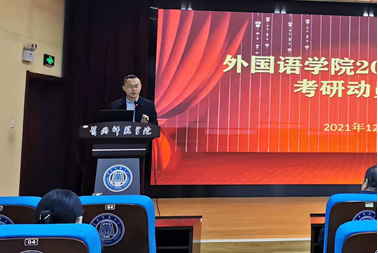 学党史办实事,温情关怀助考研。为帮助考生舒缓备考压力,增强考研信心,积极战考冲刺,12月8日下午,外院在致远楼三楼会议室召开2022届毕业生考研慰问暨考前动员大会。院党委书记余健明、院长岑海兵、党委副书记张良、副院长郑新刚参加动员会。会议由党委副书记张良主持。