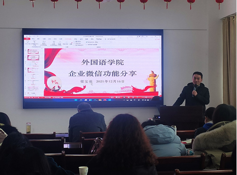 程宝俊就学院探索基于企业微信构建的院内信息化一站通平台展开培训,从“便捷组织管理、信息交互、快速审批、温馨提醒、通知公告、微盘共享”等方面实操展示分享了经验。平台建设充分发挥信息技术优势,立足解决站内在线直播教学、网上办事大厅、远程视频会议等远程服务功能,打造“互联网+具体业务”的“云办公、云教学”新模式,进一步全面推进信息化建设工作,为学院各项工作顺利开展提质增效、保驾护航。