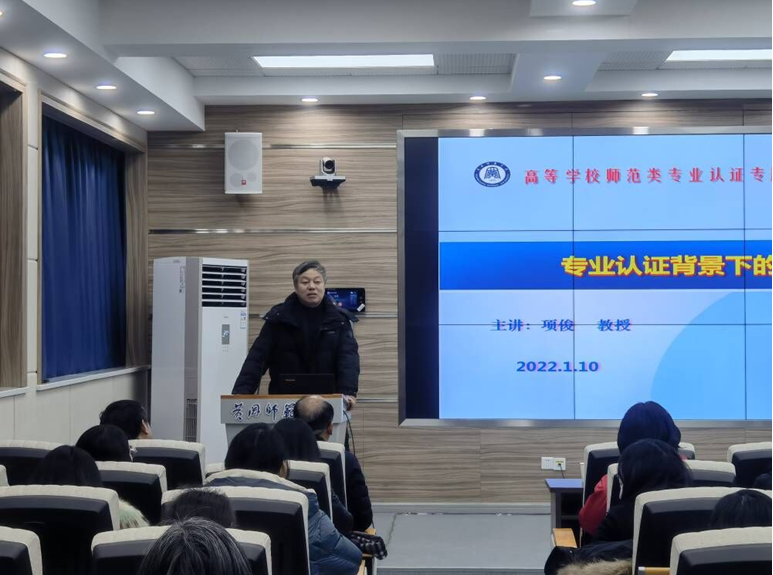 学校教务处处长项俊做了题为《专业认证背景下的课程与教学》的专题辅导报告,从专业认证守牢主线和底线、专业认证做好课程与教学、认证工作流程设计与分工等三个方面对专业认证进行了介绍说明。他强调,师范专业认证与加快课程建设、优化课堂教学、促进教师教育发展等工作相辅相成,互相促进,旨在进一步提高人才培养质量。同时,结合我校相关师范专业的认证情况,项处长对专业认证的要求进行了详细阐述,为我院后续工作的开展提供了宝贵的参考经验与借鉴。