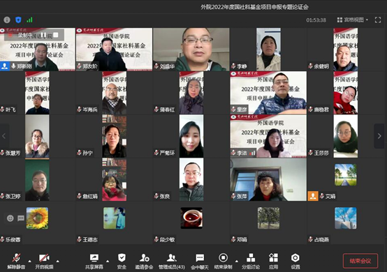 为了进一步提升外语学科建设水平,强化学科成员课题申报能力,近日,williamhill英国在企业微信平台上召开了2022年度学科建设专题研讨会,围绕拟申报本年度国家社科基金项目的10项课题进行了研讨论证。