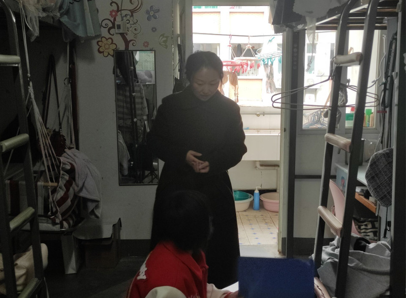 全体成员进入柳园九栋抽查个别寝室,重点对高能电器、寝室卫生做了检查,同时了解调寝情况、学生学业上的困难。