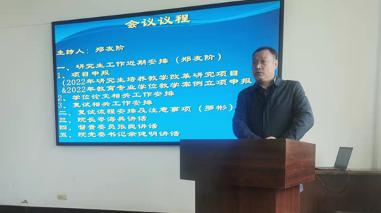 为了做好2022年研究生复试工作,确保研究生复试平稳有序进行,我院于4月6日下午举行了研究生复试工作会议,就即将到来的研究生复试工作进行部署。