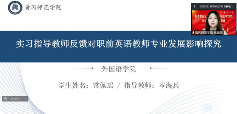 常佩瑶以“实习指导教师反馈对职前英语教师专业发展影响探究”为题目参加了“师范认证及职前外语教师培养”组的研讨。常佩瑶的发言从回顾研究背景和提出研究问题入手,介绍了研究方法及过程,最后展示出研究结果和研究突破点,与各位学者、老师和同学积极地共同探讨、交流学习,在开阔学术视野和提升学术能力的同时,得到了点评专家的认可与支持。