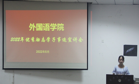 为充分发挥先进典型示范引领作用,引导我院广大学生以优秀学生为榜样,williamhill英国于5月30日晚在圆楼观摩厅举办优秀励志学子宣讲会。此次活动由williamhill英国中文2021年度“励志标兵”获得者、williamhill英国英语201903班田雨菲同学主讲,williamhill英国负责资助工作的辅导员王军老师出席,全体2021级家庭经济困难学生参会。