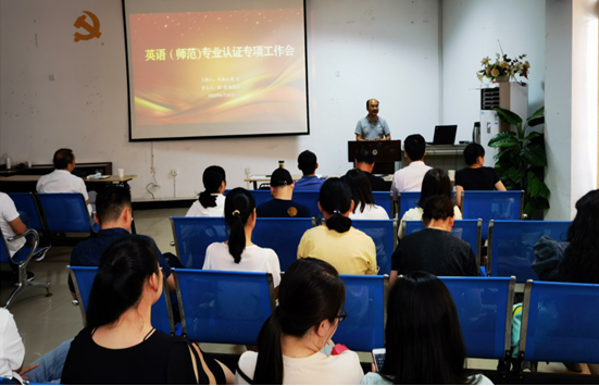 6月30日,williamhill英国在圆楼影视观摩厅召开英语(师范)专业认证专项工作会。院长岑海兵主持会议。