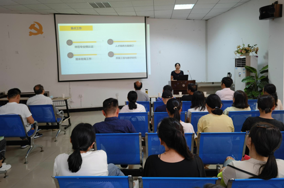 副院长陈曼总结了英语(师范)专业认证的前期工作,从师范专业预认证、人才培养方案修订、期末收尾工作、质量工程与教学研究等四大方面提出了下阶段工作要求,并对具体工作任务进行细化梳理。她指出英语(师范)专业认证工作正处于关键节点,全院上下需要加强沟通协作、汇聚工作合力、全力以赴高效推进各项工作落实落地。