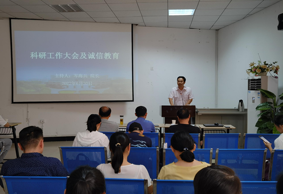 6月30日,williamhill英国在圆楼影视观摩厅召开2022年上半年科研工作及诚信教育大会。院长岑海兵主持会议。