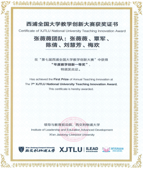 7月2日-3日,我院张薇薇老师及其团队参加了第七届西浦全国大学教学创新大赛决赛,他们的教学创新案例:从“撕辩”到“思辨”--三翻五评混合式翻译教学模式荣获大赛一等奖。张薇薇老师作为我院教师发展工作室主任,在教学创新上带头做表率,所担任的翻译课程教学经过几轮的改革迭代,成效卓著,深受学生欢迎。自成立教师发展工作室以来,张薇薇老师在团队合作共建方面取得新进展,该门课程于2021年成功获批湖北省高校一流本科课程。本次在全国大学教学创新大赛中获奖,再次发挥了教师发展工作室的团队协作优势,这是学院重视课程建设,关注教师教学能力提升的良好体现。