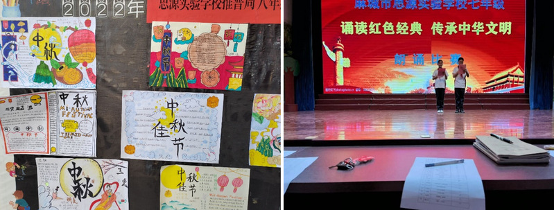 因为九月十月中秋国庆节日纷至沓来,思源学校举办了中秋佳节手抄报比赛以及诵读红色经典朗诵比赛等赛事,我在没课之余,都会去体验学生们的各种活动,为孩子们积极向上的精气神感到十分高兴。