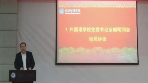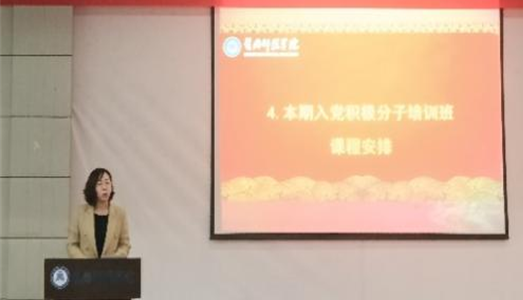 余健明代表两个学院党委对本期培训班的顺利开班表示衷心祝贺!向参加本期培训班的全体学员表示热烈欢迎!他向参训学员提出三点意见:一是端正态度,认真学习并掌握党的基本知识和基本理论,正确认识自己的入党动机,提高思想政治觉悟,做到组织上入党与思想上入党的统一;二是明确目标,努力提高入党积极分子培训学习效果。通过这次培训,学员们要进一步提高自身思想水平和政治素质,以党员标准要求自己,使自己成为德智体美劳全面发展的榜样;三是严格要求,圆满完成此次培训学习任务。学员们要以积极认真的态度,良好的精神状态参加培训,增强纪律意识,加强学习管理,强化培训的严肃性,确保通过培训能使广大学员综合素质得到显著提高。余健明希望学员们能在大学这个人才辈出的大熔炉里使自己不仅成长为一名合格的大学生,同时也成为一名名副其实的共产党员。