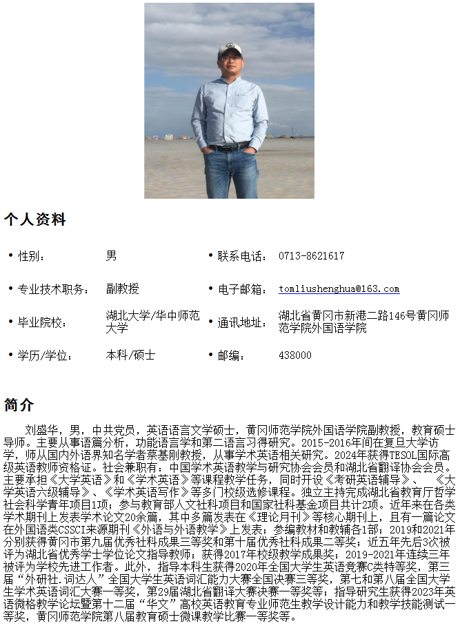 刘盛华 副教授