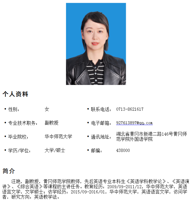 汪艳 副教授