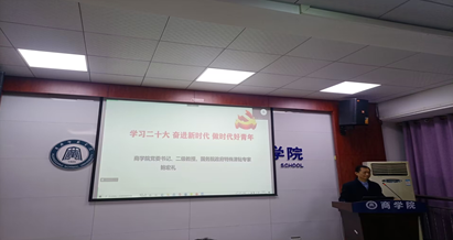 商学院党委书记鲍宏礼作动员讲话。他向参训学员提出“四个要”:一是要遵守纪律要求,作为新时代青年,要明白有所为,有所不为;二是要认真学习好理论知识,为未来的考研和相关政治课学习打好基础;三是要体现学习的积极主动性,努力提高自身政治素养;四是要及时反思,在学习后消化理解所学知识。