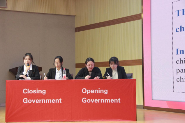 本次辩论的议题为“政府是否应该支持父母优先考虑孩子的教育,即便这会付出高额的代价”。八位辩手口若悬河,旁征博引,从孩子、父母、学校、社会、国家等多个角度论证己方观点,驳立结合,攻守有度,在面对对方质疑时能从容应对,立场坚定,对答如流。